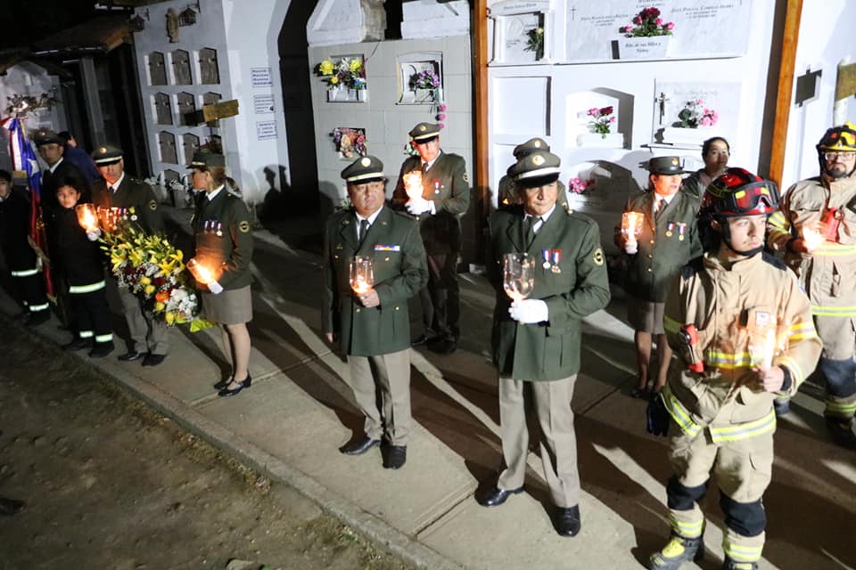 En el campo santo se escuchan las palabras del bombero que hace de locutor, del superintendente quien hace recuerdo de sus bomberos y agradecimiento a la comunidad por acompañar en esta importante ceremonia al padre (cura) quien pronuncia oración en memoria y eterno descanso de los bomberos. La ceremonia concluye con la puesta de ofrenda floral por parte del cuerpo de bomberos de Chépica al son de la trompeta con sonido del silencio y toque de sirena de su material mayor.